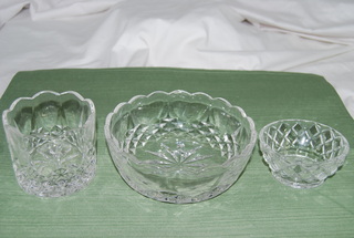 3 Piece Heavy Cut Crystal Bowl in Various Sizes with Scalloped Edge.