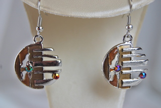 Ladies Designer Amber & Silver Cloisonne Design Pierced Earrings.