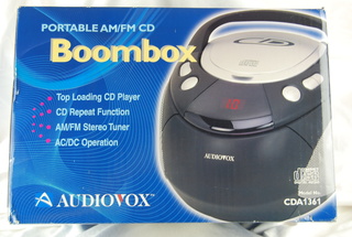 Audiovox Portable Boom Box. CD - AM/FM Stereo, Top Loading , Repeat Function, AC/DC Operation, New in Box
