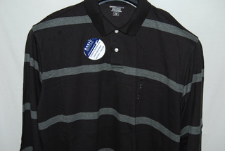 Basic Edition Mens Black Polo, 2XL with Silver Stripes Long Sleeve Shirt, 100% Cotton, new with tag. SRP:$ 35.00