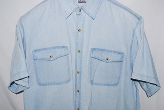 Basic Editions Stonewash Demin Jean Men's Shirt, 2XL, Button Down Collar, Double Front Pockets with Flaps Button Down, Short Sleeves, new without tags.