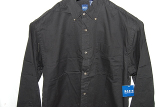 Basic Editions Mens Shirt, Large, Black with Button Down Collar, 100% Cotton, new with tags.