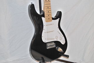 New Behringer Black Strat Electric Guitar, Triple Humbucker Pick-Ups, Built-In USB Port, Headphone Jack, White Pickguard, Chrome Bridge, 22 Fret Rosewood Fingerboard.
