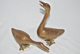 Laughing Ducks Bronze Sculpture Set, 2 Ducks included.
