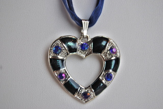 Ladies Designer Black & Purple Crystal Heart Cloisonne Necklace on Purple Ribbon Rope Cord.