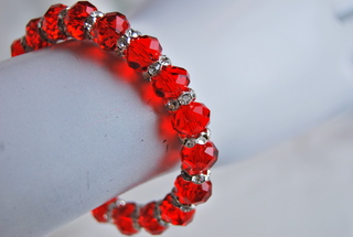 Ladies Designer Red Crystals & Silver Rondells Stretch Bracelet.