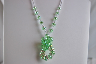 Ladies Designer 20" Green Crystals & Silver Rondells Knot Necklace.