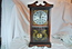 Collectable Vintage Grandfather Design Chiming Clock, Wood Cabinet with Glass Door, Gold Trim, Winding Key. Table Standing or Wall Mount. 18" H x 10" W X 7" D. Open Box, Tested.