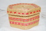 Decorative Hand-Woven Basket, 6 Sided Red Satin Lining, 4.5" Diameter x 3" High.