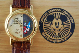 Men's Disney Designer 1994 Officail Disney Convention Mickey Wizard Design Quartz Water Resistant Watch with Brown Alligator Design Band in "Image Collectors" Wooden Box.
