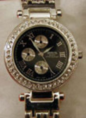 Men's Geneva Elegante Designer Quartz Two-Tone Watch with CZ Accents, CZ Accented Bezel and Black Face.