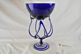 Hand-Blown Colbalt Blue Glass Sculpture, Bowl Design. 10" H.