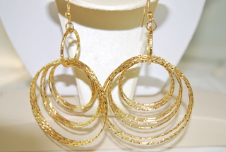 Ladies Designer Gold Tone Hoop Pierced Earrings, 3" Diameter.