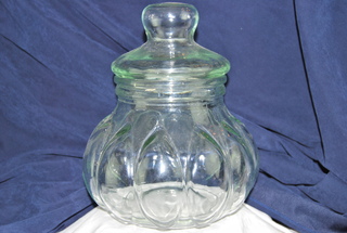 Hand-Blown Glass Candy / Cookie Bowl with Top, 11" H. x 5" Top Diameter, 9" Overall Width, 7" Deep.