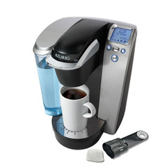 Keurig Stainless and Black Programmable Single-Serve Coffee Maker. Keurig Platinum brewing system includes a 12 K-Cup variety pack with water filter kit