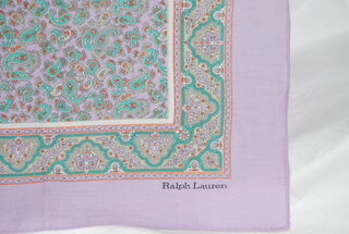 Ralph Lauren Printed Paisley Design on Purple Fashion Scarf. 100% Polished Cotton. 34" x 34".