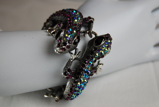 Ladies Designer Amber Swarovski Crystals Hinged Cuff Lizard Gecko Bracelet.