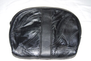 Ladies Leather Designer Jewelry - Make-Up Bag with Zipper. 8"L x 6 1/2"W.