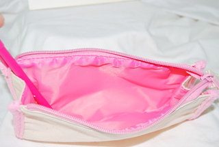 Ladies Canvas with Pink Velour Edges Make Up Bag, Lined in Pink Satin.