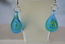 Ladies Murano Hand-Blown Clear Glass Pierced Earrings with White, Orange & Gold Swirl Tear Drop Design.