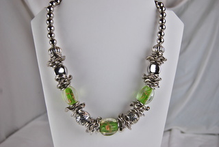 Ladies Designer 19" Green, Gold & Silver Beads Necklace.