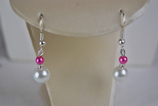 Ladies Designer Pearl & Pink Bead Pierced Earrings.