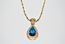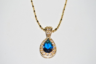 Sapphire Tear Drop Ladies Designer Necklace with CZ accents, 18" gold chain. New without tags.