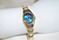 Ladies Lotus Designer Quartz Two-Tone Bracelet Watch with Sapphire Blue Metallic Face.