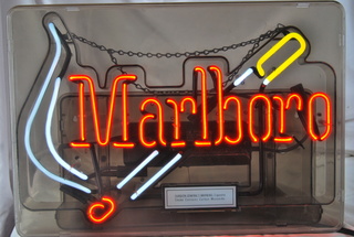 Collectable Marboro Neon Light, Clear Plastic Housing to Protect Neon Light, Chain included for Wall Hanging, Open Box, Excellent Condition. 110V. 21.5" Long x 15" High x 5" Wide.