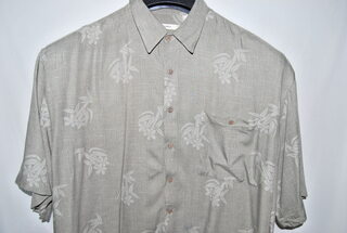 Campia Men's Designer Casual Shirt, 2XLT, Black with Hawaiian Design, Short Sleeve, Button Front Pocket, 100% Cotton, new without tags.