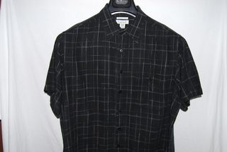 Campia Men's Designer Casual Shirt, 3XL, Black with Purple, Silver, Brown and Black Multi-Colored Leaf Design, Short Sleeve, Front Pocket, 100% Cotton, new without tags.