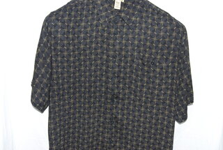 Islander Designer Men's Casual Shirt, 2XL, Black with Gold Design, Short Sleeve, Button Front Pocket, 100% Rayon, new without tags.