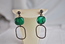 Ladies Designer Geometric Metal with Green Beads Pierced Earrings.