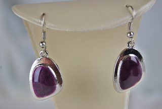 Ladies Designer Silver & Purple Inlay Geometric Cloisonne Design Pierced Earrings.