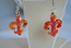 Ladies Murano Hand Blown Glass Pierced Earrings with Red and Black Fleur De Lis Design on 18" Rope Cord.