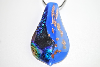 Ladies Murano Hand-Blown Glass in Amber, White, Purple & Gold Metallic Swirl Design Pendant Necklace on 18" Rope Cord.