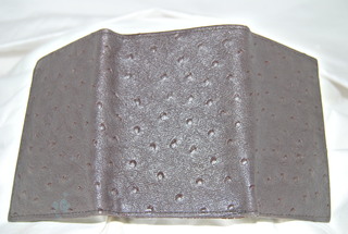 Men's Ostrich Skin Design Tri-Fold Wallet in Dark Brown Design.