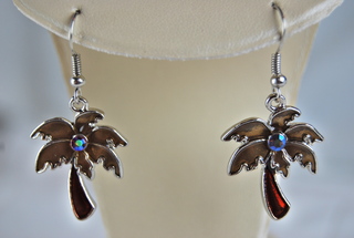 Ladies Designer Amber & Crystal Palm Tree Design Pierced Earrings.