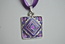 Ladies Designer Purple & Silver Square Design Necklace on Purple Ribbon Rope Cord.