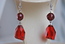 Ladies Designer Red Crystal in Geometric Design Pierced Earrings.