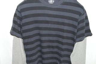 Route 66 Mens "2 in 1" Baseball Shirt, XL, Gray and Black Striped Top Shirt with Silver Long Sleeves, Both Short and Long Sleeves, 100% Cotton, new without tags. SRP:$ 35.00