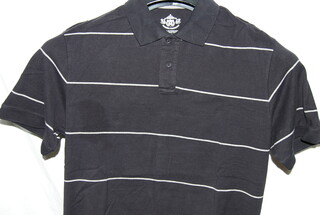 Route 66 Men's Polo, Medium, Black with White Stripes on Collar, Short Sleeve, new with tag.