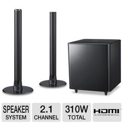 Samsung HW-E550 Sound Bar Speaker System, Samsung HW-E550 Sound Bar Speaker System - 2.1 Channel, 310 Watts, Bluetooth Enabled, HDMI, USB, 2 Vertical Speakers or Soundbar, Black.
