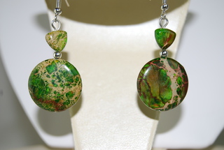 Ladies Designer Natural "Sea Green" Jasper Gemstone Pierced Earrings, 3/4"W x 1"L.