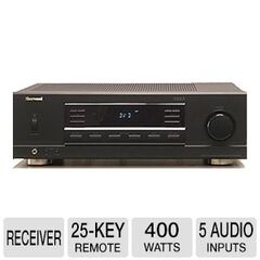 Expand your entertainment options with the Sherwood Multi-Source/Dual-Zone Receiver. It features the ability to switch among four pairs of speakers from the front panel through the remote control. The 25-key unified remote control allows convenient operation, while the large display lets you easily view your song/artist data. You can now listen to your favorite albums, CDs, or DVDs, and to radio tuner that comes with 30 preset stations. It is also included with features like Sleep Timer, Bass and Treble Tone Controls. The 400 Watt receiver.