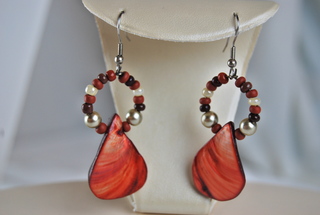 Ladies Designer Bronze Shell with Faceted Beads & Pearls in Tropical Design Earrings.