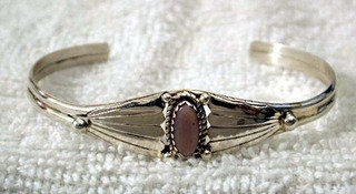 A marvelous, sterling silver bracelet, with a classic natural Mother-of-Pearl stone in the center.