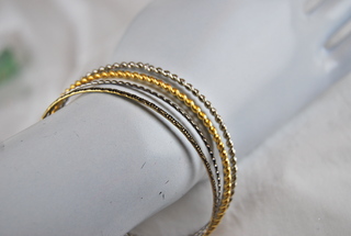 5 Piece Set - Ladies Polished Silver & Gold Bangle Bracelets. Wear separately or all together.