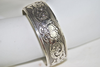 Ladies Silver Stainless Lucky Dragon Design Adjustable Cuff Bracelet.