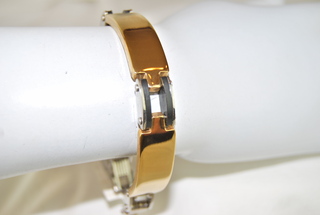 David Sigal" Ladies Designer 7 3/4" Hinged Silver Stainless & Gold Tone Bracelet.